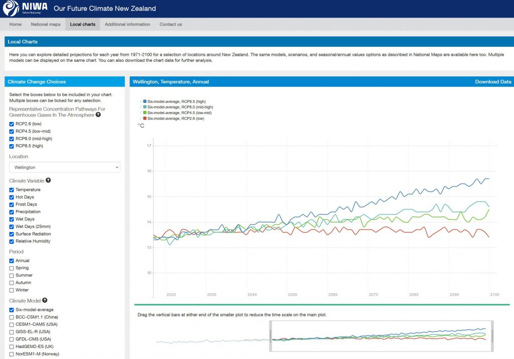 The NIWA site has some models and pages on looking at specific areas in NZ here, using RCP’s (Representative Concentration Pathways For Greenhouse Gases In The Atmosphere) of 2.6 , 4.5, 6.0, 8.5 so a number of models. This is Greenhouse gasses for rainfall and temperature, not sea level.