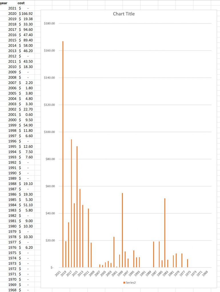 ICNZ cost of natural disasters here. From downloaded CSV from 1968 to 2020 I made this graph in Excel from pivot table. So over time there are more natural disasters and costs associated with those disasters. I filtered the disasters to only ones mentioning FLOOD (a bit crude I know) and you can see greater frequency and cost