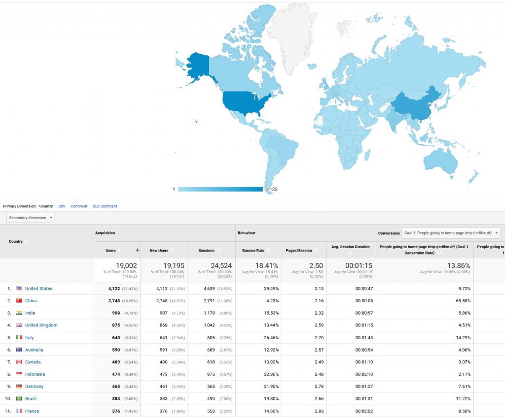 Overall, big population countries, China, India & US first, then English speaking US, UK, Aus & Canada. Germany I’d take with a pinch of salt as that is where my server is located.