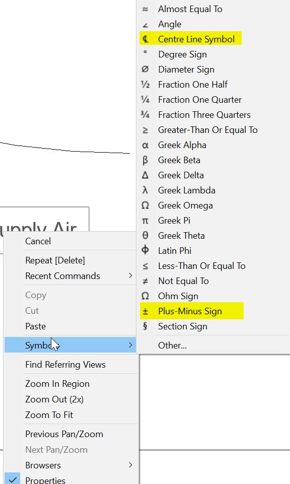 Lots of symbols from seeing what was available from revit context menu to add to my hotstrings. The unicode is different to the Alt+ ones. Some of the unicode work, others don’t, eg CL (centreline &