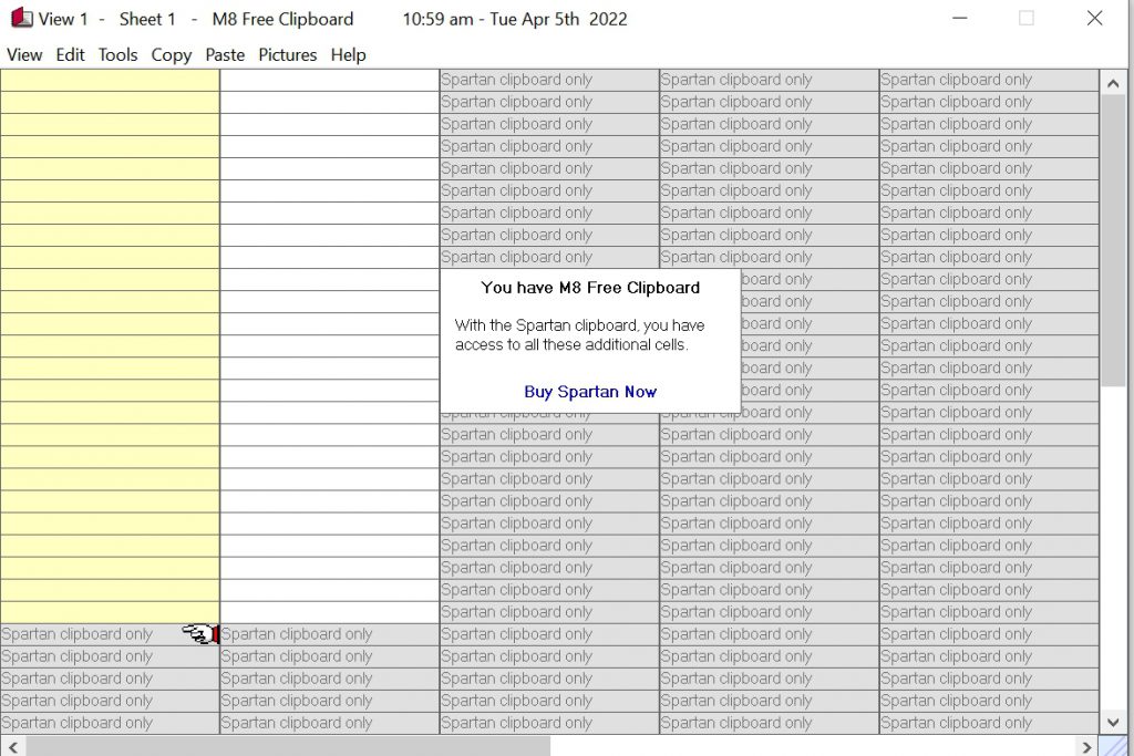 There is a free cutdown version called Freeclip or M8 Clipboard which has basically disabled most of the screen so only a small proportion can be used. Also no scripting language by the look of it. It say’s to buy but when following link there is no webpage. M8 Free Clipboard