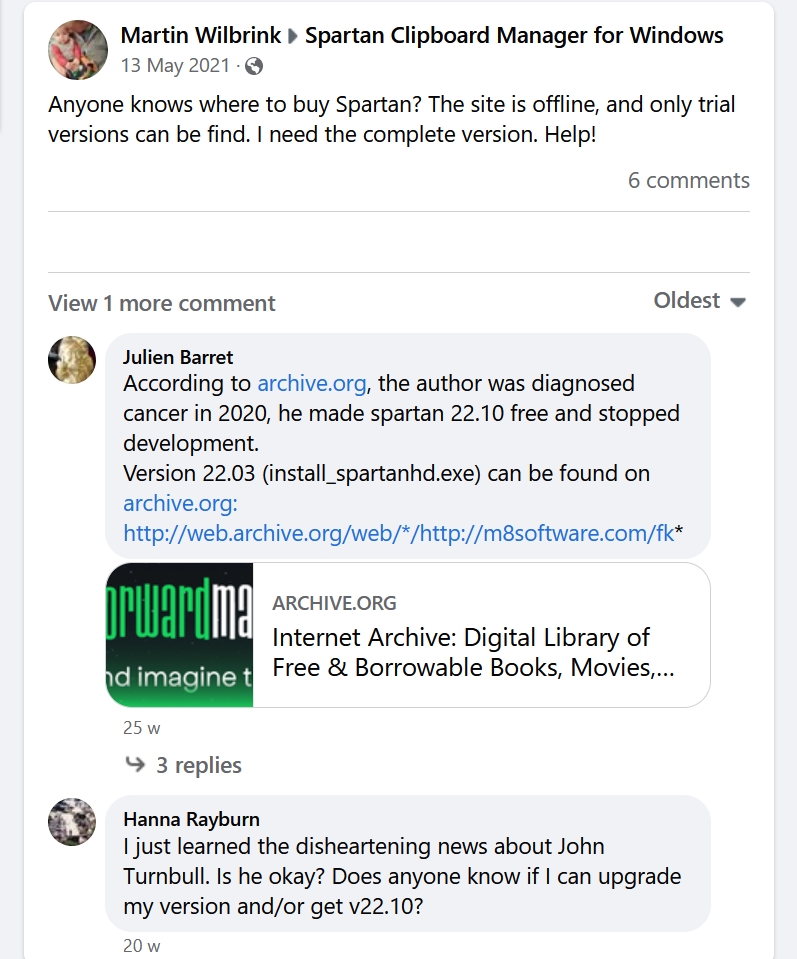 Spartan YouTube PlaylistIt seems that the author was diagnosed with cancer (see Facebook screenshot below) and so made the last version 22.10 a free version. After hunting the web I found a portable version V21.06 without evaluation counter and so I’ll be using that one as it does have the scripting language too. I think the portable version is just located in a different more accessible folder.