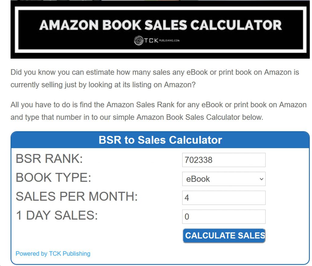 I wondered how you would know how many books had been bought. I looked at a couple of articles and it does not seem that straightforward. They pointed to a methods using a Book Sale Calculator .
