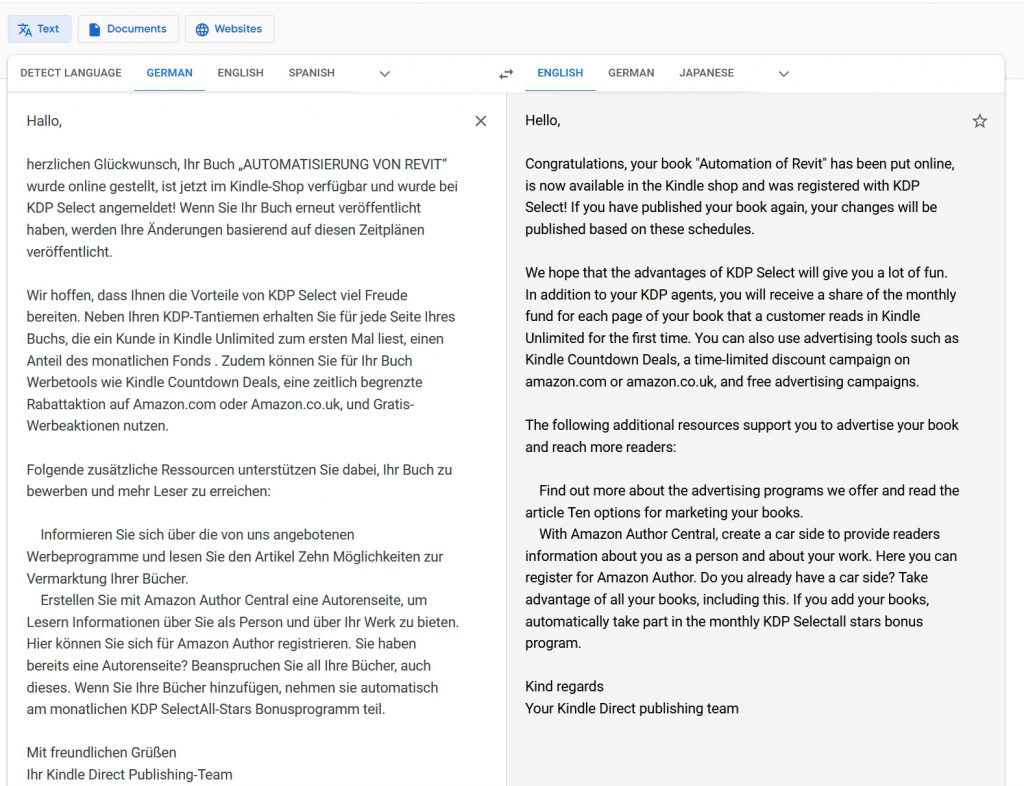 I added a comment in the introduction about the translation process so that readers would know it was an automated process. Later, on reading KDP guidelines thought it might be rejected when submitted, it wasn’t.