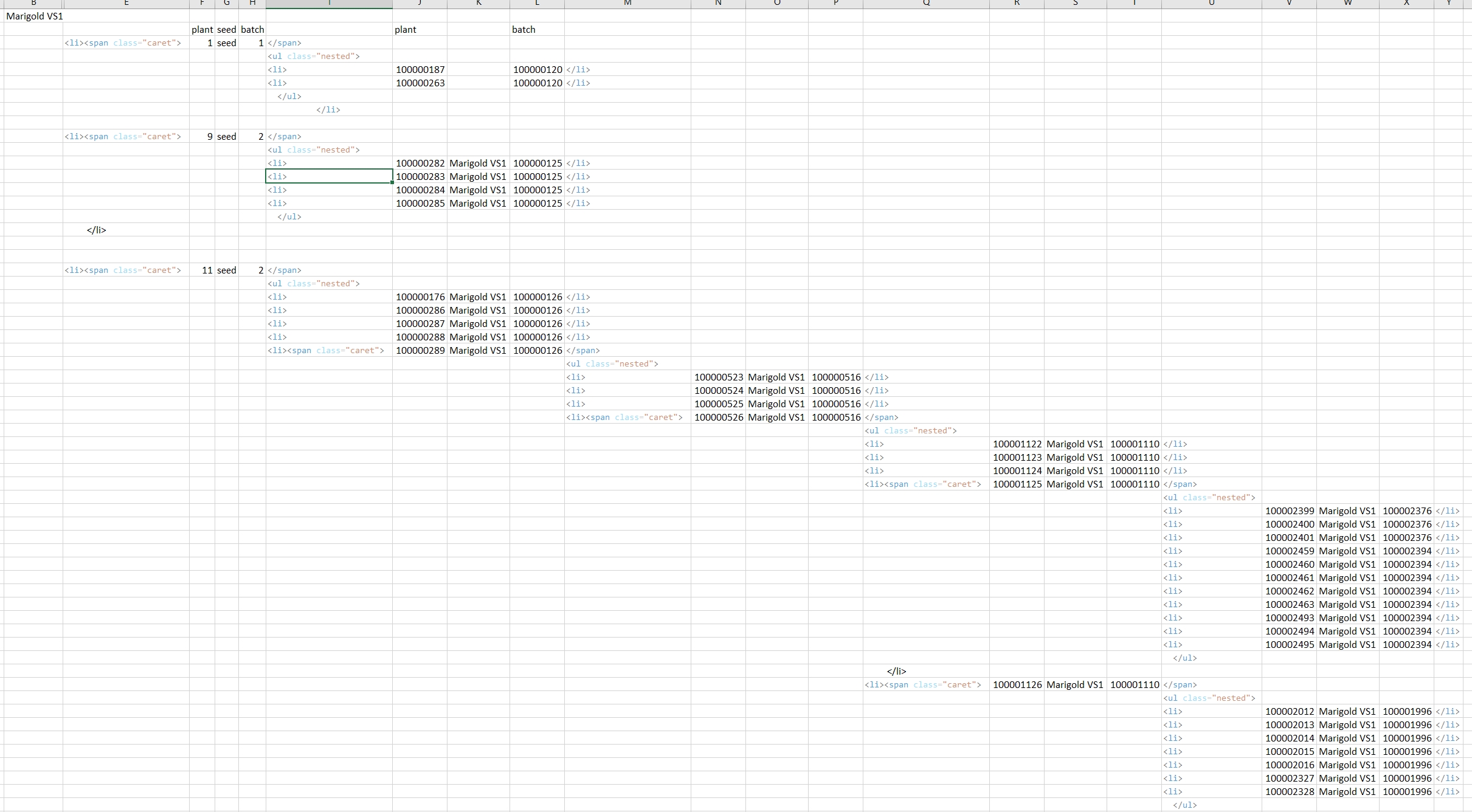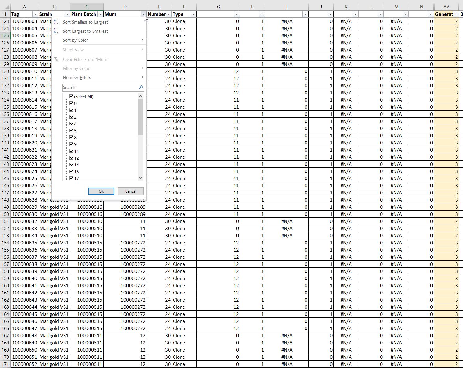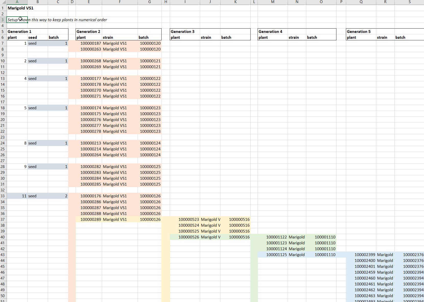 My daughter is a grower and she had information on the different generations of plants she is growing. She has a spreadsheet that she uses to show different strains of plants, grown initially from seed and then cloning the plants to get the best strains.