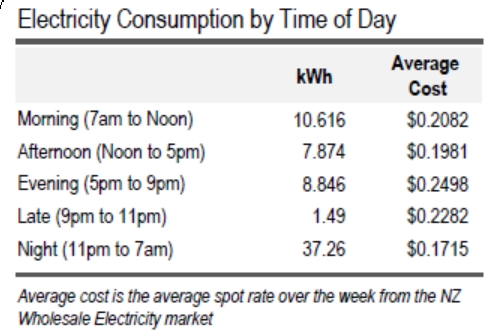 One of my major use of electricity is in heating my Hot Water Cylinder for showers and dish-washing, so I now turn it on at nighttime and off in the same period instead of leaving it running throughout the day. This means my major percentage of power use (average 58%) is in the nighttime period as shown in the table below.