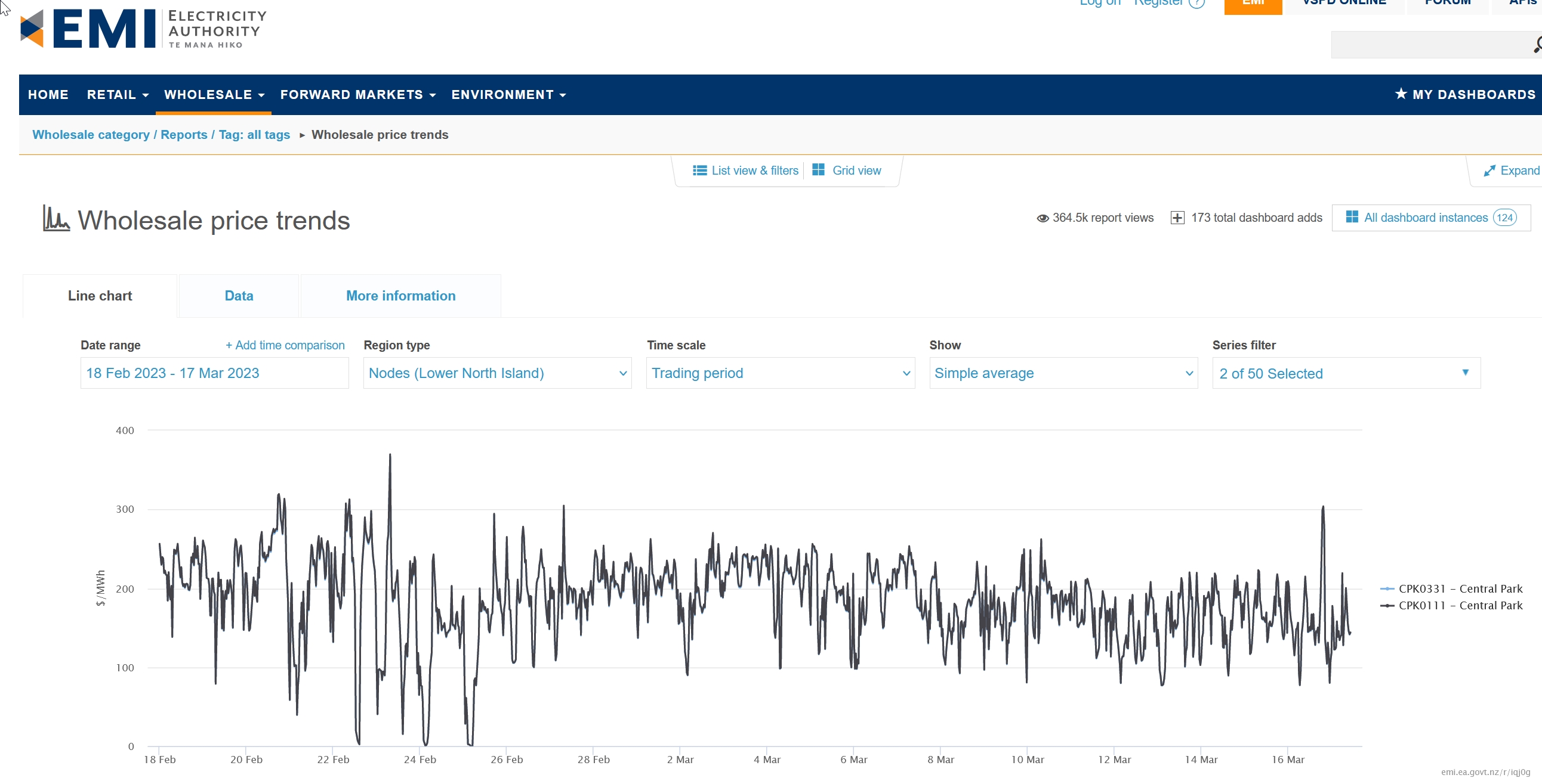 I do have access to the historic Time series of spot pricing for price/MWh coming from the local substation at 1/2 hour intervals from the Electricity Authority (EA) as shown below that is up to the current time.