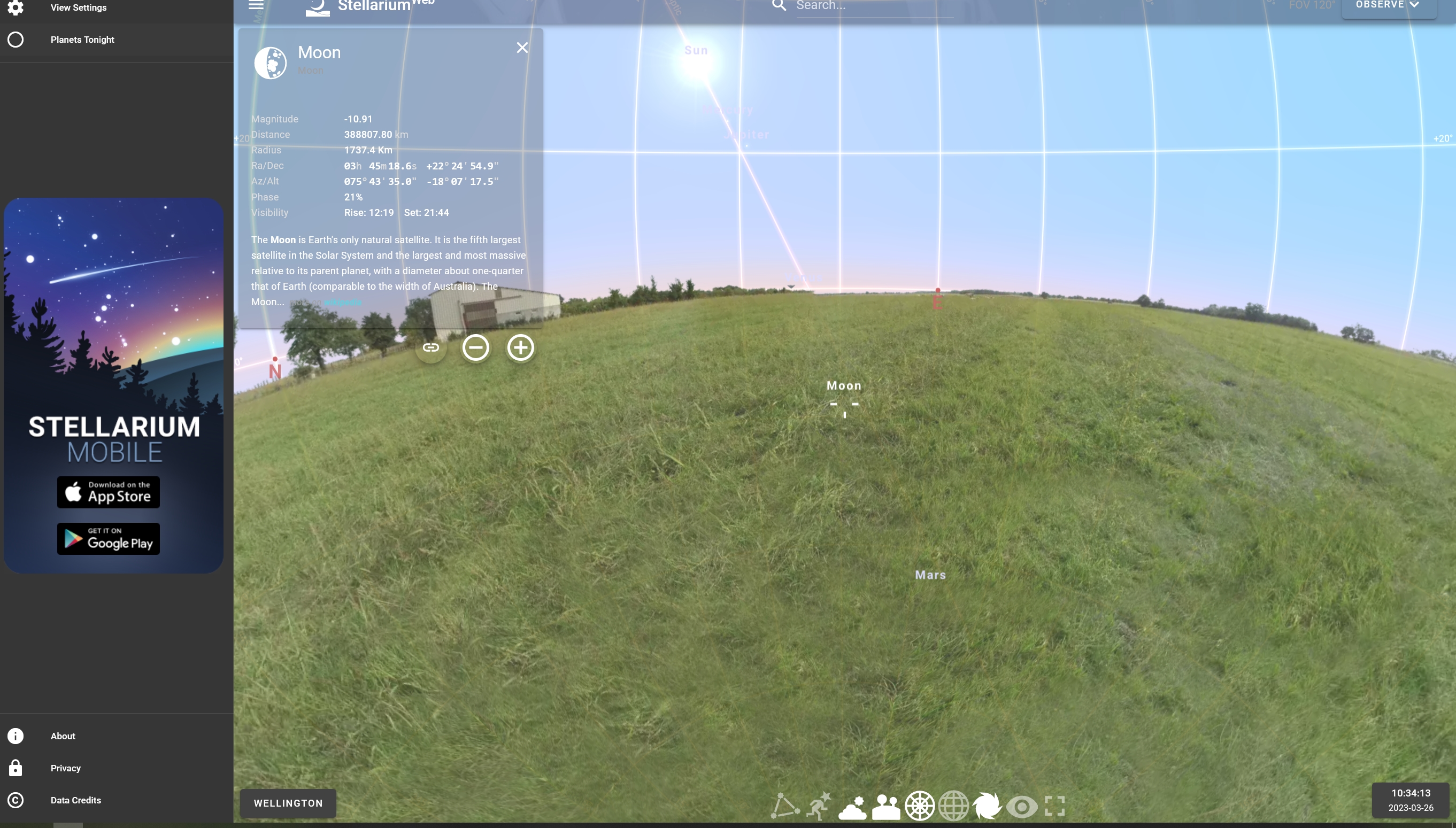 # Set up location and time Wellington (-41.2963 * N, 174.7964 * W)