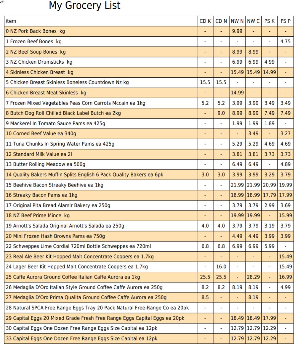 The URL is then requested and the Dataframe created and then pivoted to give the original list that is sorted alphabetically. I then merge the Dataframe with a new dataframe created from the ‘gxxx.csv’ file and they are matched on the ‘item’ column, and then the id & item column are deleted and the ‘product’ column from the ‘gxxx.csv’ file is renamed ‘item’ (just because the PDF creator uses this column name in the script following building the correct dataframe) and then the PDF is created.